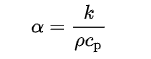 熱拡散率は数式で表すと以下の通りです。(Wikipedia「温度拡散率」より)